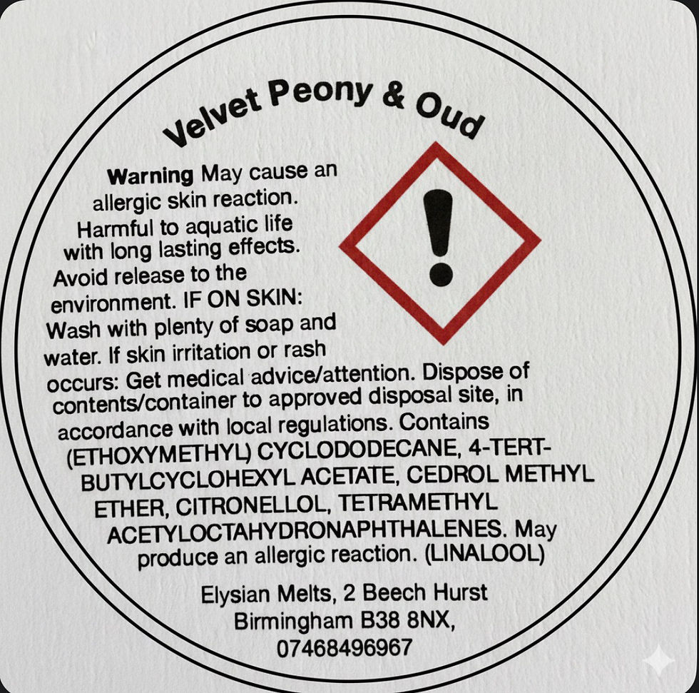 This page provides CLP hazard and allergen information for fragrances used in our wax melts. Customers are advised to read this information before purchasing. All products come with the relevant CLP & safety wax melt warnings attached. Safety data sheets are also available upon request.